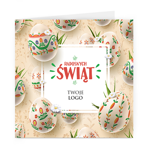 wzór: kwadrat_230 SPECYFIKACJA: Logo i życzenia są drukowane bezpośrednio na kartce. Do każdej kartki dołączona jest biała koperta. Istnieje możliwość zmiany haseł na froncie na dowolnie podaną wersję językową lub nadrukowanie własnego loga również na froncie kartki. |