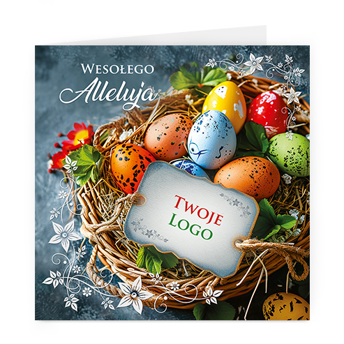 wzór: kwadrat_250 SPECYFIKACJA: Logo i życzenia są drukowane bezpośrednio na kartce. Do każdej kartki dołączona jest biała koperta. Istnieje możliwość zmiany haseł na froncie na dowolnie podaną wersję językową lub nadrukowanie własnego loga również na froncie kartki. |