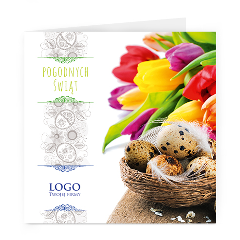 wzór: kwadrat_46 SPECYFIKACJA: Logo i życzenia są drukowane bezpośrednio na kartce. Do każdej kartki dołączona jest biała koperta. Istnieje możliwość zmiany haseł na froncie na dowolnie podaną wersję językową lub nadrukowanie własnego loga również na froncie kartki. |