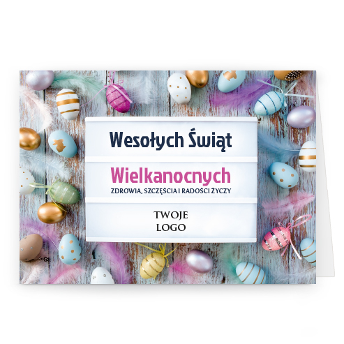 wzór: poziom_59 SPECYFIKACJA: Logo i życzenia są drukowane bezpośrednio na kartce. Do każdej kartki dołączona jest biała koperta C6. Istnieje możliwość zmiany haseł na froncie na dowolnie podaną wersję językową. |