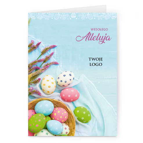 wzór: pion_75 SPECYFIKACJA: Logo i życzenia są drukowane bezpośrednio na kartce. Do każdej kartki dołączona jest biała koperta C6. Istnieje możliwość zmiany haseł na froncie na dowolnie podaną wersję językową. |