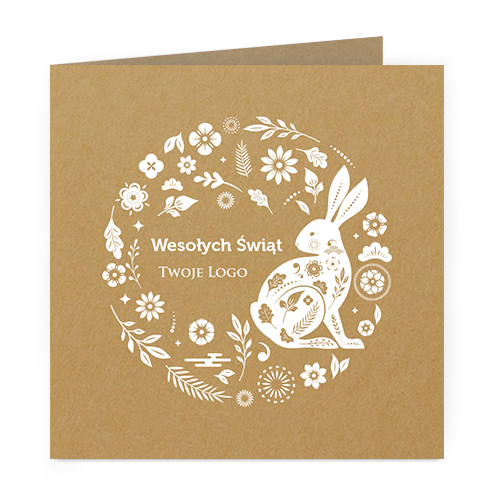 wzór: eko_50 SPECYFIKACJA: Logo i życzenia są drukowane bezpośrednio na kartce Do każdej kartki dołączona jest biała koperta. Istnieje możliwość zmiany haseł na froncie na dowolnie podaną wersję językową lub nadrukowanie własnego loga W KOLORZE BIAŁYM również na froncie kartki. |